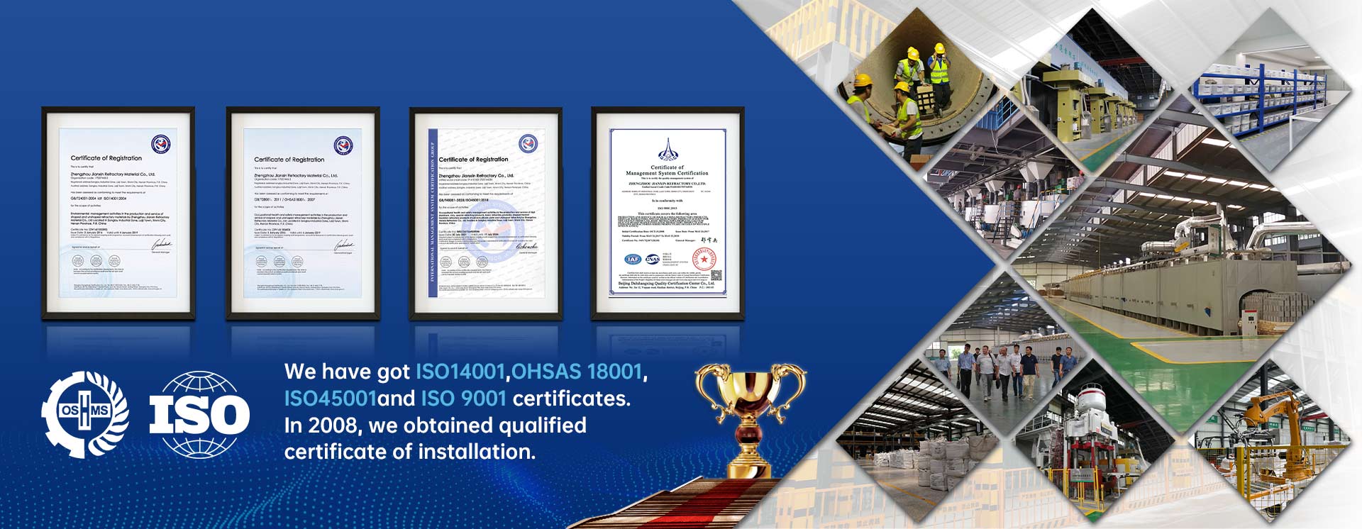 公司致力于耐火新材料、新技術、新產品的開發(fā)和推廣應用,是國家高新技術企業(yè),產品先后通過了ISO9001質量管理體系、ISO14001環(huán)境管理體系、GB/T28001職業(yè)健康安全管理體系認證,同時具有防水防腐保溫工程專業(yè)承包貳級資質、冶金工程施工總承包叁級資質、環(huán)保工程專業(yè)承包叁級資質。